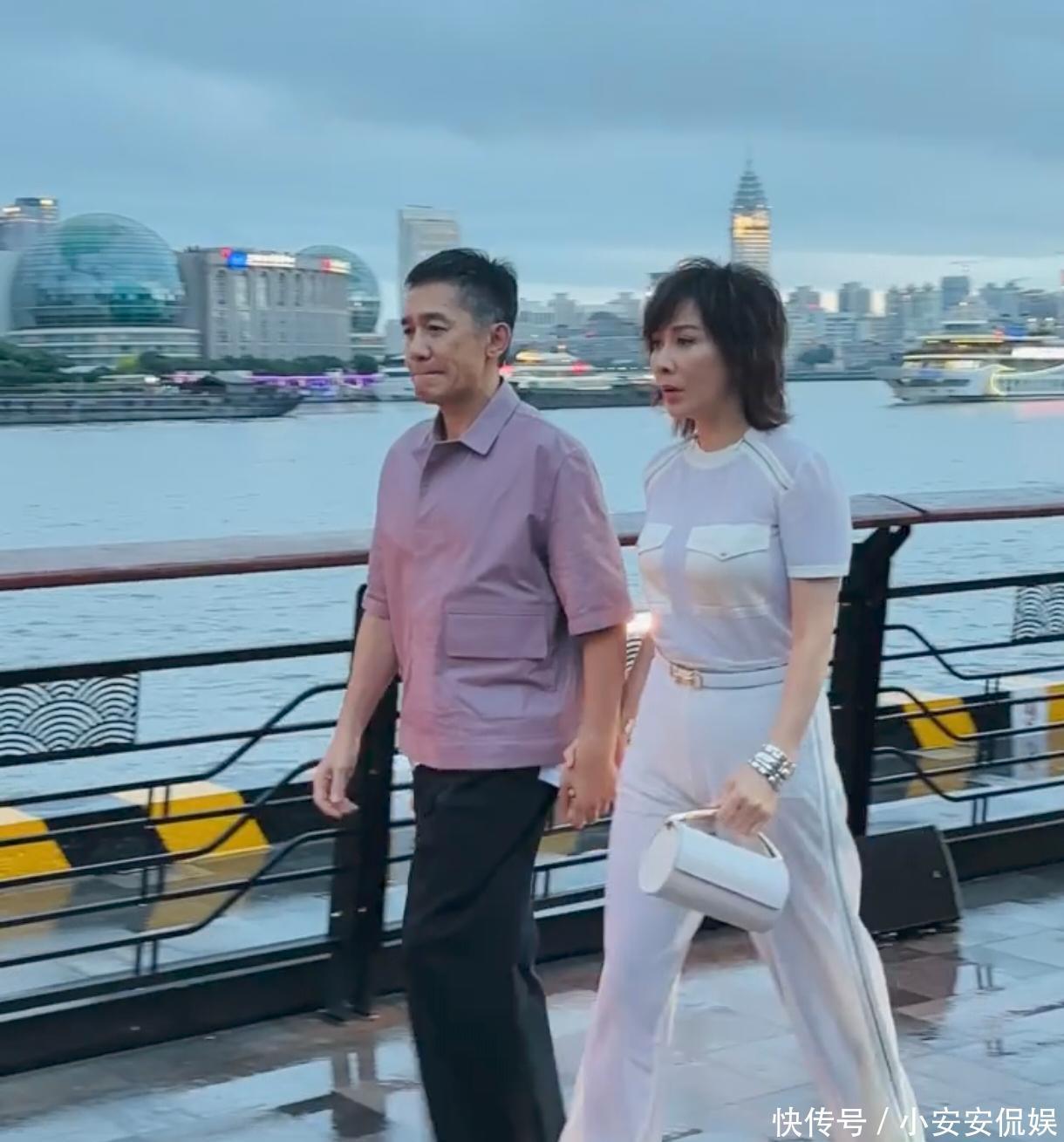 刘嘉玲59岁了,真的看不出来,身材好好,很瘦,但是很健康的感觉,穿的也时尚,很大气,不像普通人,她走在前面,很有自信,一直在和周围的人打招呼,很放松,状态真好,不像快60岁的人。梁朝伟就不一样了,他好像老了很多,头发都白了,皱纹也深了,感觉保养不如刘嘉玲,有点内向,不太爱说话,有点拘谨,好像不太适应这种人多的场合,他跟在刘嘉玲后面,有点不自在。